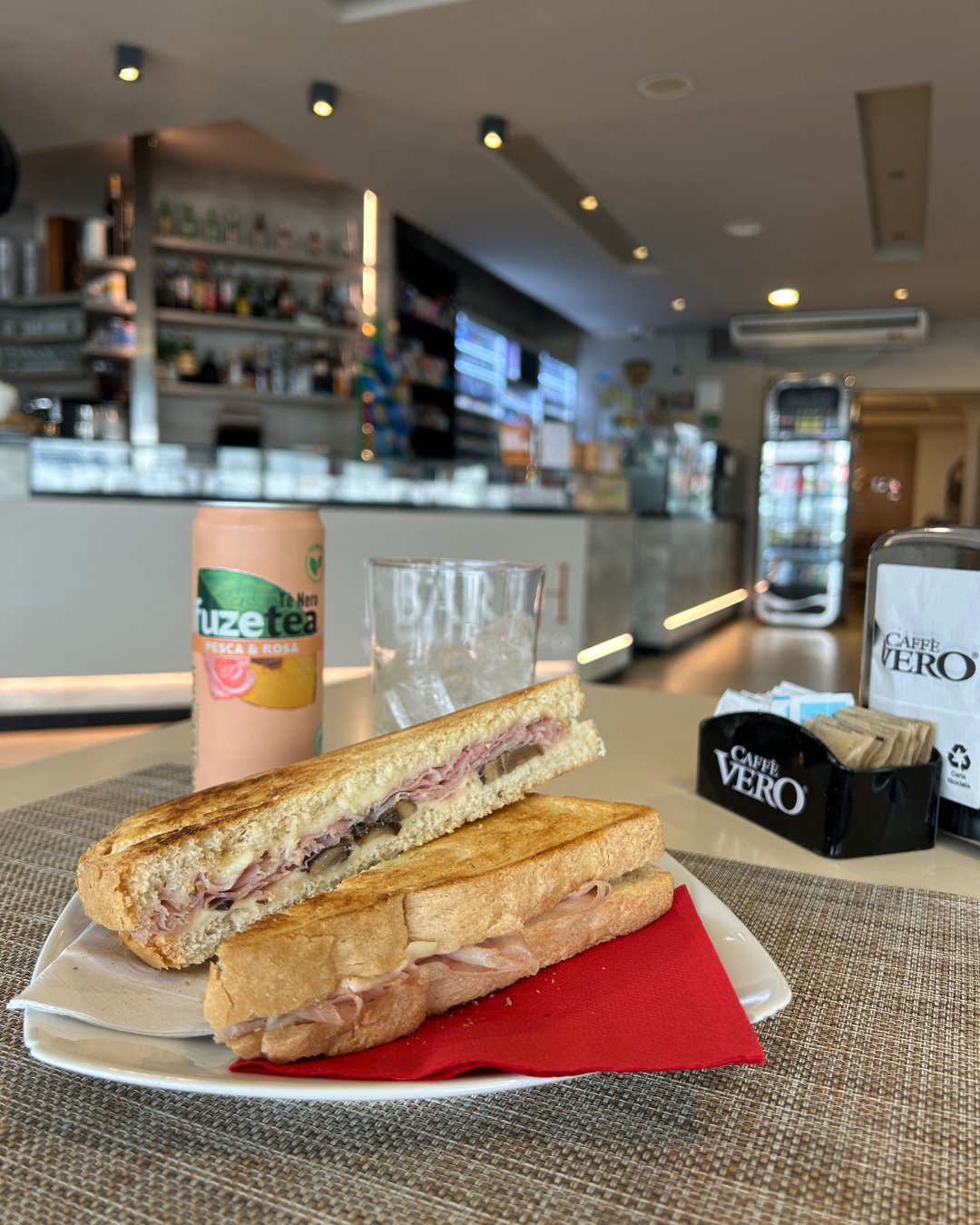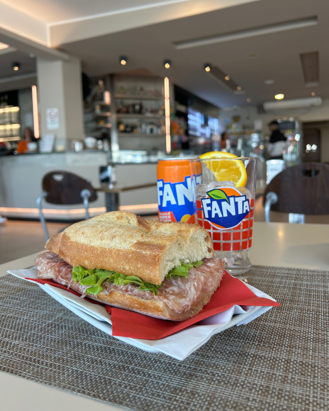 Dal bancone, potrai scegliere tra una selezione di snack freschi come tramezzini, panini caldi o freddi, preparati ogni giorno con ingredienti di qualità.