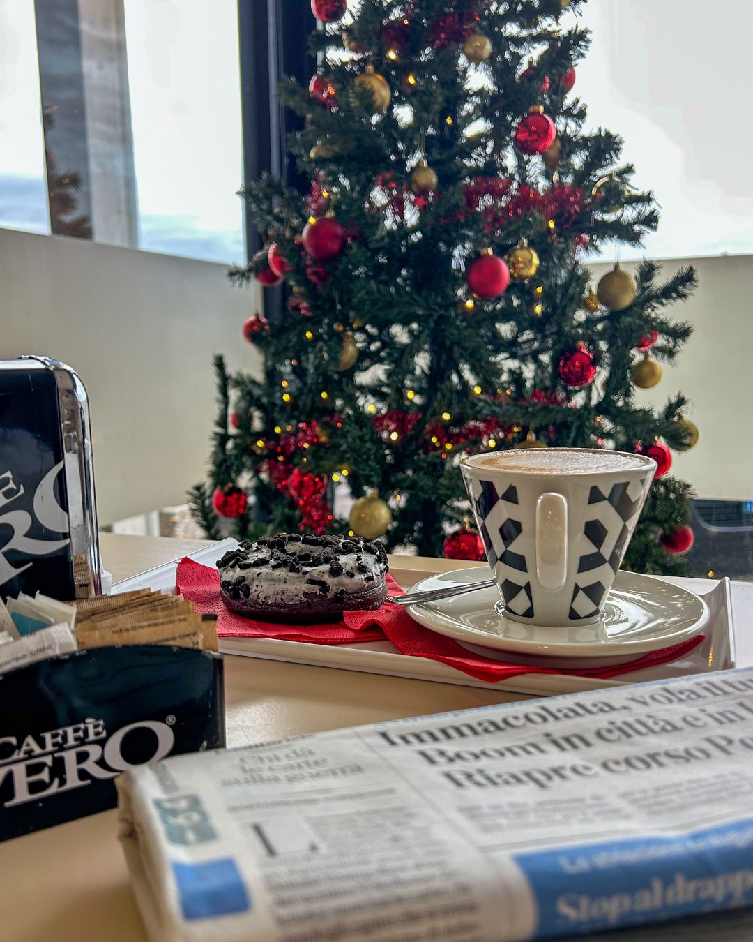 Un bar aperto 24 ore su 24, addobbato per il Natale, dove il calore dell’ambiente e del personale rende ogni pausa più accogliente.